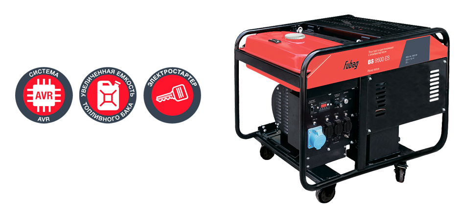 Бензиновая электростанция FUBAG BS 9500 ES в продаже по цене 0 руб. в Интернет-магазине Проф-инструмент с доставкой в Краснодаре и Краснодарском крае. Звоните по телефону +8 (800) 302-10-51.