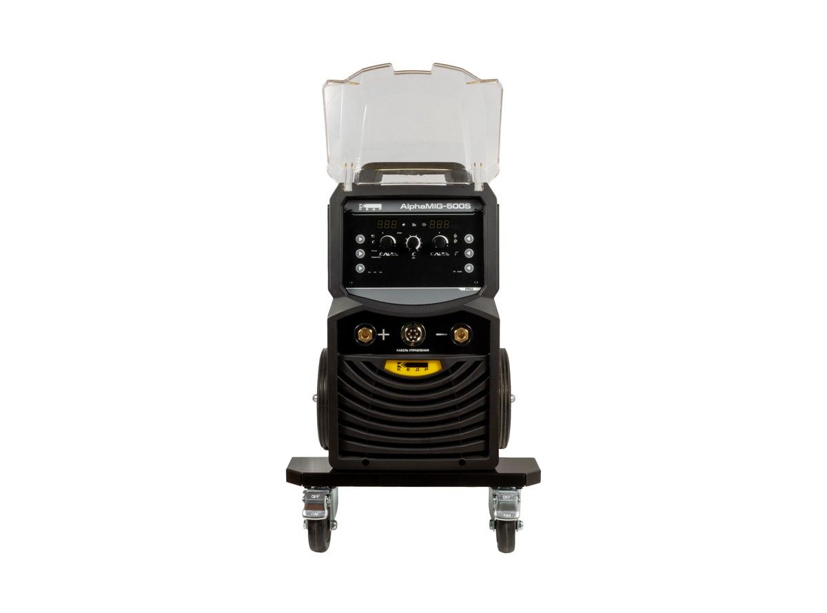 КЕДР AlphaMIG-500S –промышленный полуавтомат для производительной и высококачественной сварки, работающий в паре с компактным и мощным 4-роликовым подающим устройством и оснащённый транспортной тележкой с платформой для газового баллона. Аппарат имеет высокую степень защиты от пыли и влаги и идеально подходит для сварки тяжёлых конструкций на судостроительном, энергетическом, нефтехимическом и других производствах, где так важны надёжность и жизнеспособность оборудования.