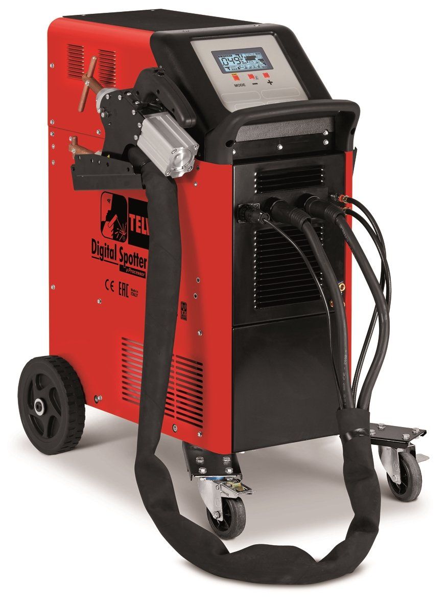 Telwin DIGITAL SPOTTER 9000 400V + ACC сварочный аппарат с микропроцессорным управлением, предназначенный для точечной сварки тонкостенного металла. Применяется в авторемонтных мастерских, производственных и промышленных площадках.