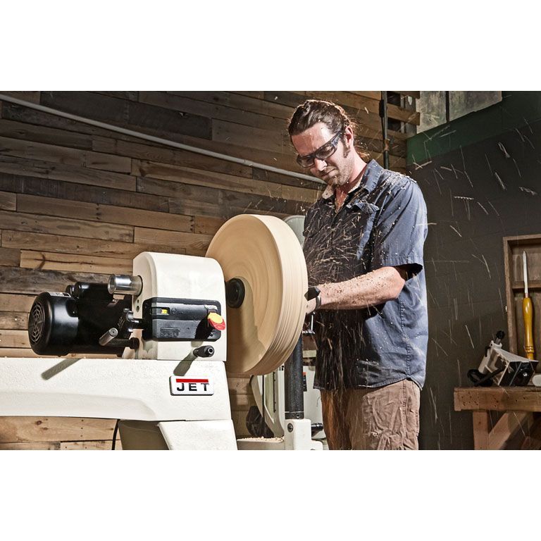 Jet JWL-1440VS – массивный и устойчивый токарный станок с большой зоной обработки, вариаторным приводом шпинделя и мощным асинхронным двигателем, рассчитанным на продолжительную работу без перерывов на охлаждение. Модель является развитием хорошо себя зарекомендовавшего станка JWL-1442, популярного как у профессионалов, так и у любителей работы с деревом. Особенность новинки – плавное, бесступенчатое изменение скорости, шпиндель с резьбой М33х3,5 и настольное исполнение (массивные чугунные ноги для напольной установки предлагаются за отдельную плату). В качестве опции также поставляется и удлинение станины, причем монтировать его можно на двух уровнях, что позволяет работать с заготовками увеличенного диаметра (подразумевается их крепление без использования задней бабки). Конструкция подручника также адаптирована для такой работы.